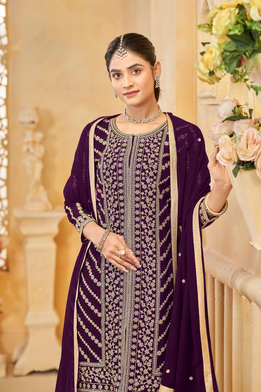 Elegant Designer Indian Embroidered Georgette Sharara Suit With Dupatta