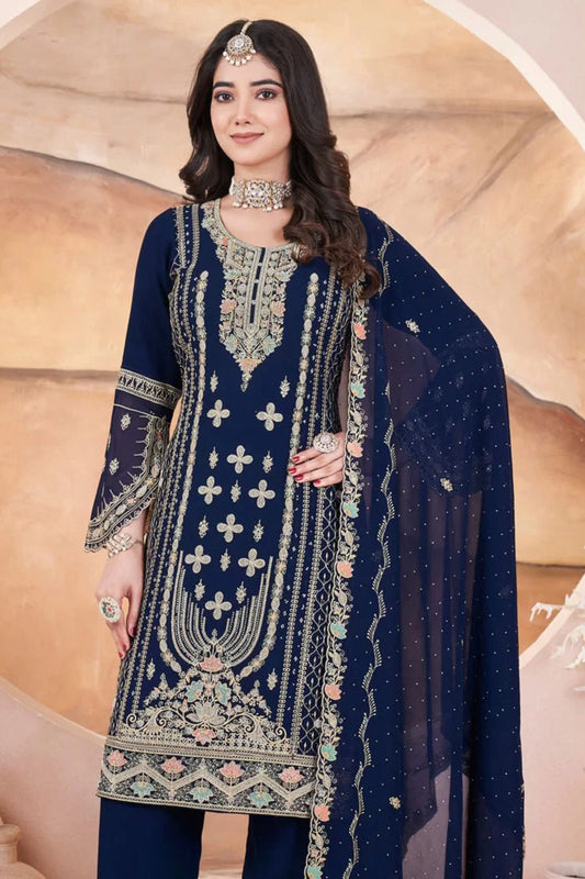 Elegant Blue Salwar Kameez with Embroidery for Traditional Festivals