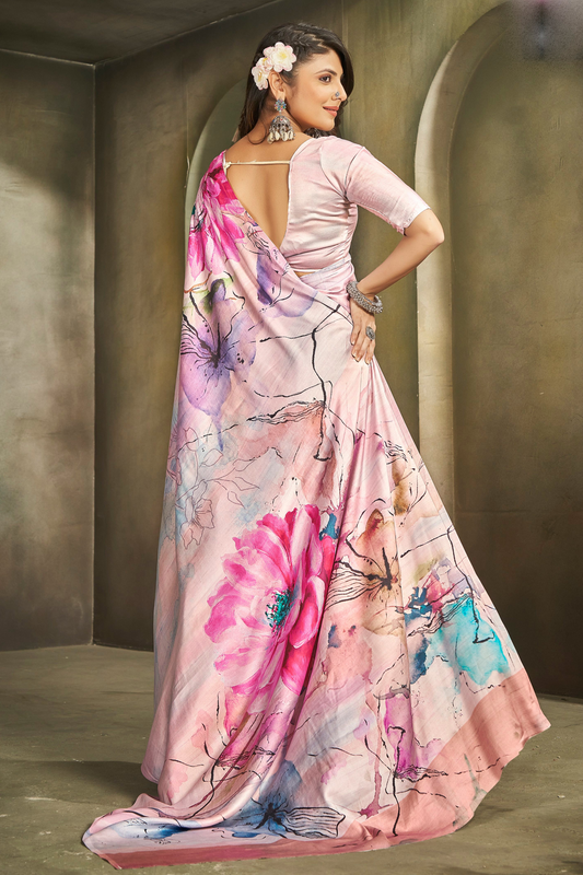 Pink Designer Silk Saree with Embroidered Blouse for Indian Style