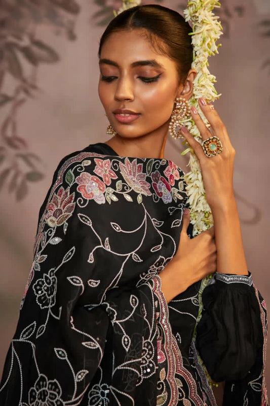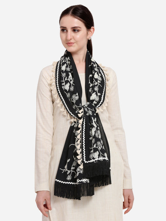 Black Floral Embroidered Pure Khadi Dupatta for Events