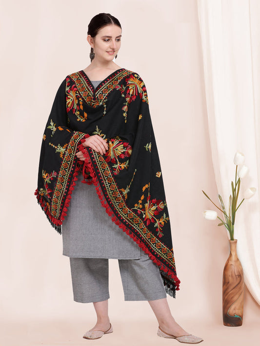 Black Khadi Dupatta with Kashmiri Motif Embroidery – Designer Style
