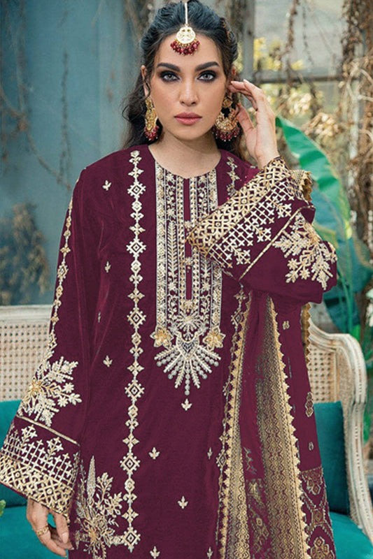 Wine Embroidered Plus Size Salwar Kameez for Modern Look