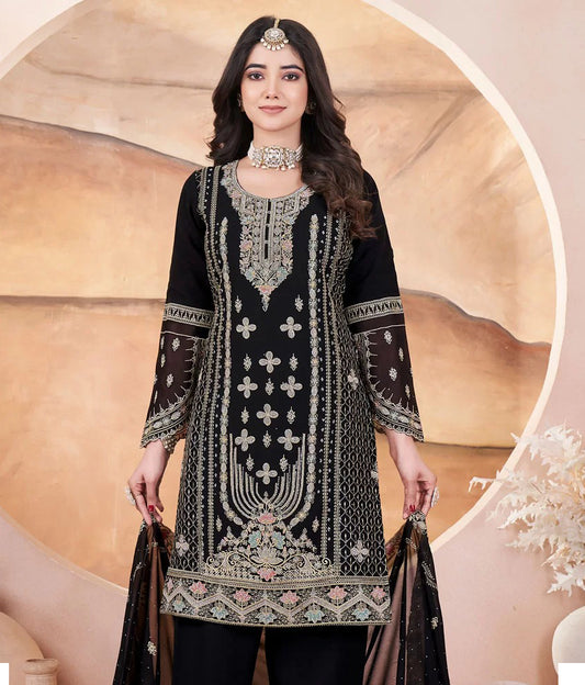Bridal Look Embroidery Work Black Color Lehenga With Dupatta