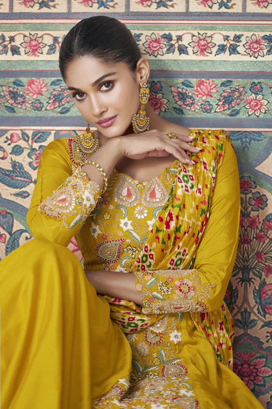 Indian Wedding Haldi Party Wear Yellow Color Anarkali Evening Gown