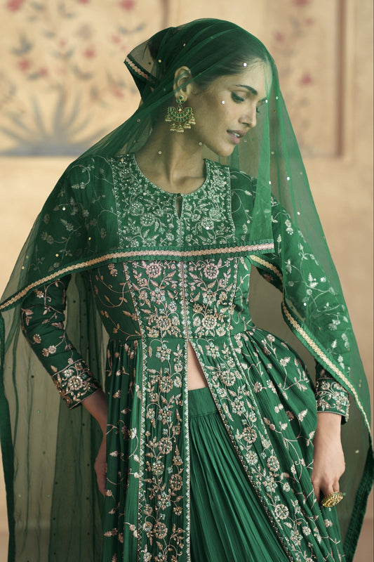 Beautiful Anarkali Gown in Dark Green Color color for Wedding Function