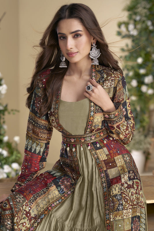 Sage Green Color Wedding Special Anarkali gown Indo-western Dress