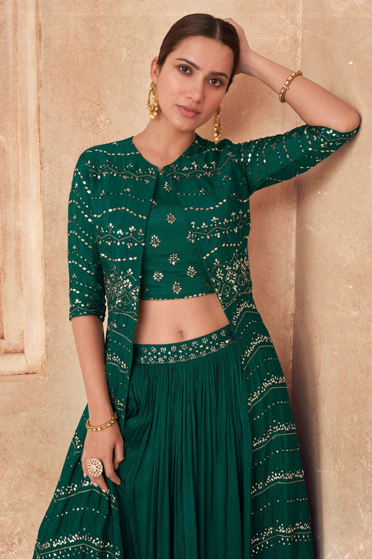 Teal Green Georgette Jacket Lehenga for Haldi & Wedding Events