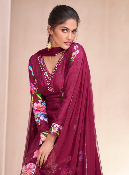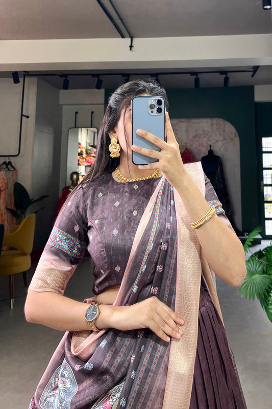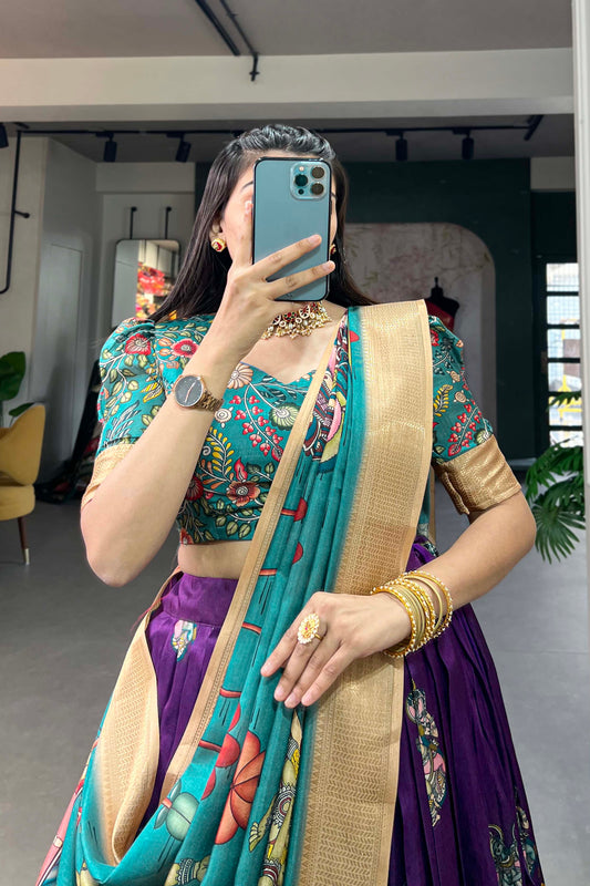 Purple Lehenga Choli with Digital Print and Embroidery Work