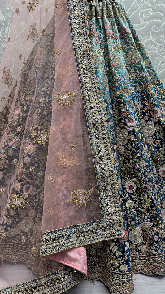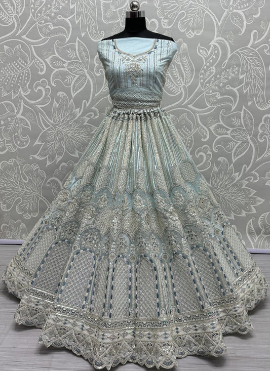 Beautiful Indian Wedding Wear Blue Color Lengha Choli With Dupatta