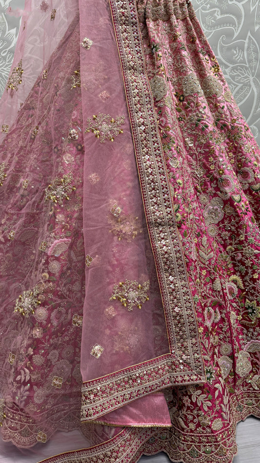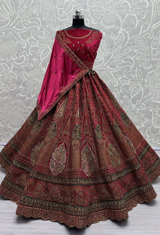 Wedding Velvet Pink Lehenga with Soft Net Embroidery Work