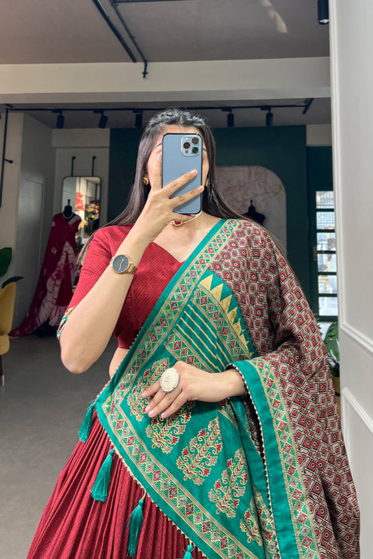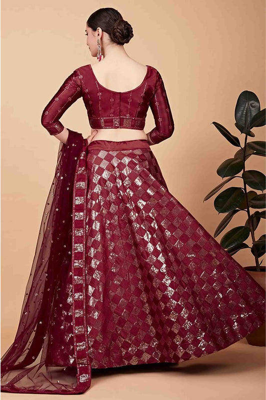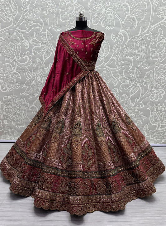Wine Color Wedding Lehenga Choli with Beautiful Silk Dupatta