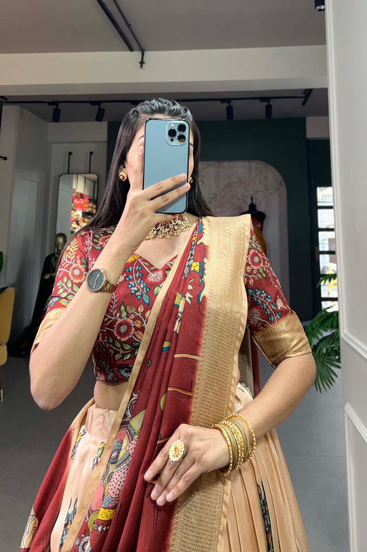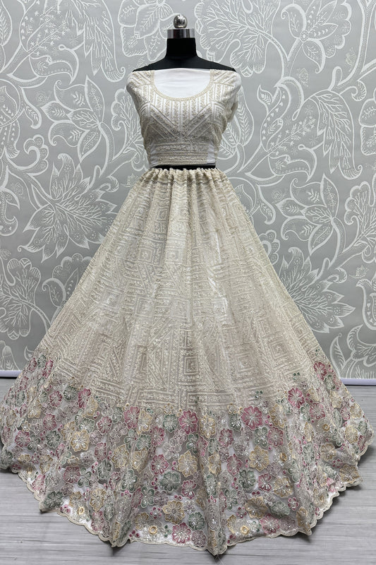 Cream Floral Print Stitched Lehenga Choli for Wedding Wear