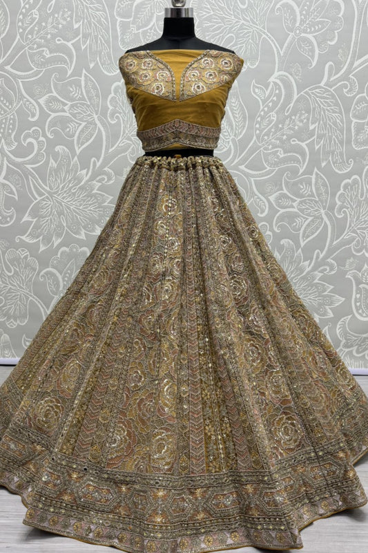 Mustard Yellow Haldi Lehenga Choli with Zari & Sequin Work