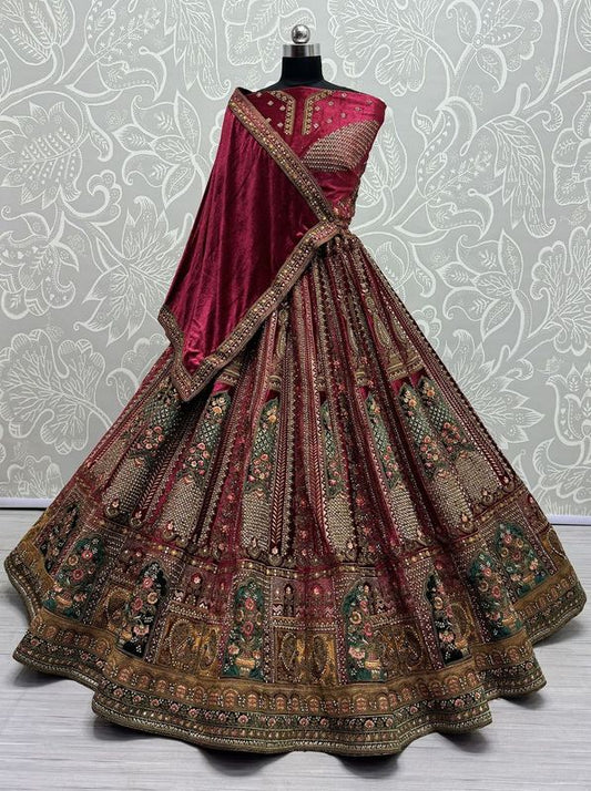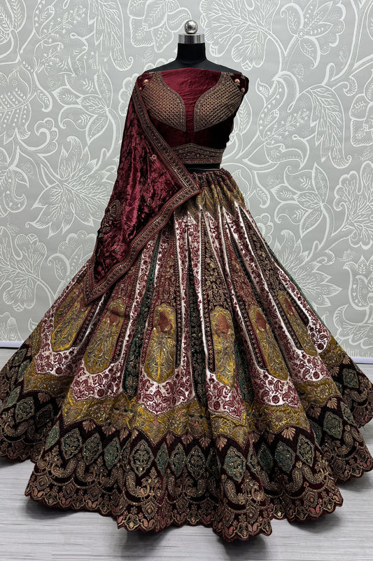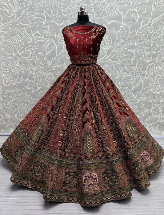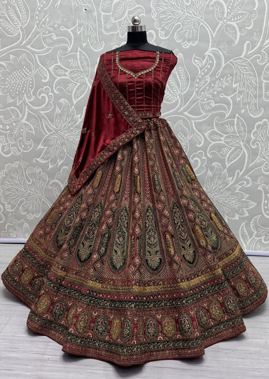 Maroon Bridal Lehenga Choli with Heavy Indian Embroidery Work