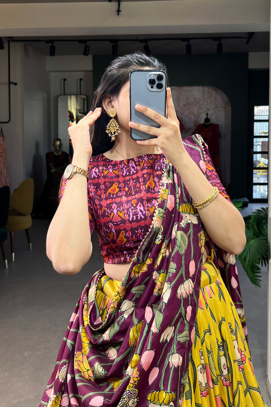 Mustard Patola Lehenga Choli with Foil Print Dupatta for Navratri