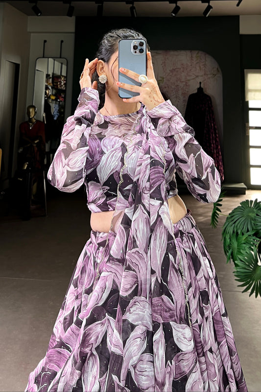 Designer Floral Sequin Lehenga for Indian Party Wear