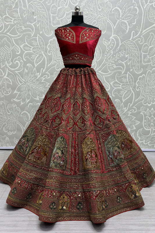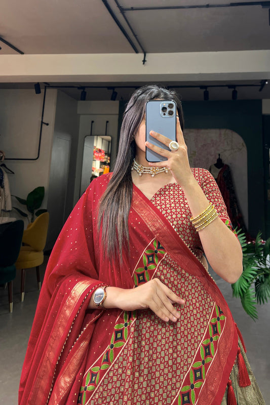 Red Silk Ready-to-Wear Lehenga Choli with Stylish Dupatta
