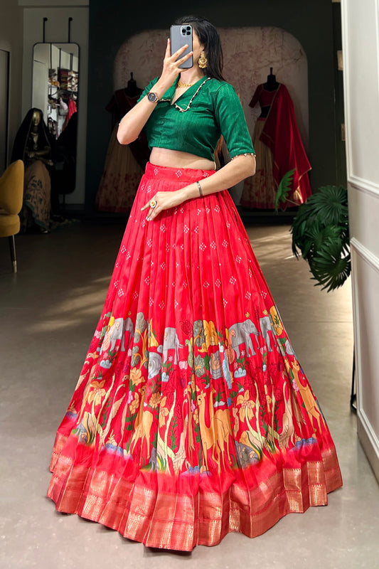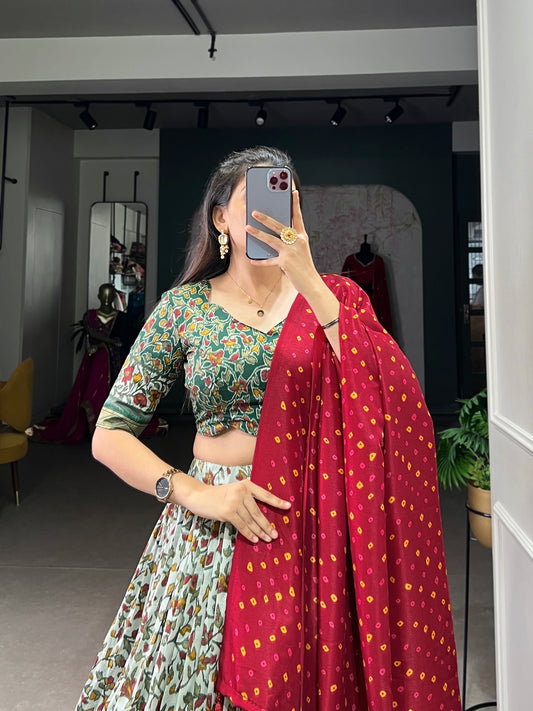 Green Silk Printed Lehenga Choli for Festival