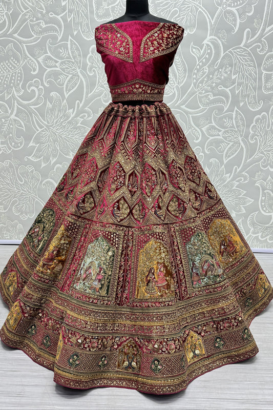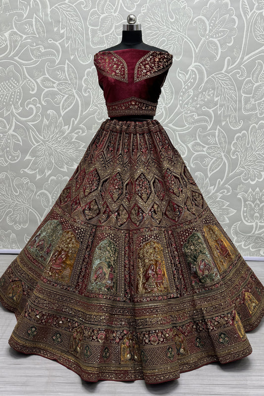 Velvet Embroidered Bridal Lehenga Choli with Net Dupatta