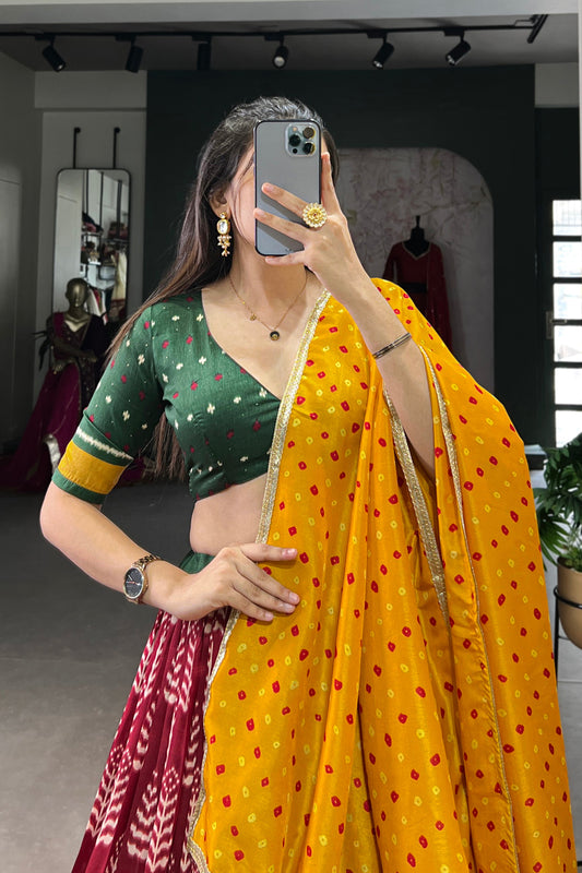 Gorgeous Navratri Silk Lehenga Choli with Mustard Dupatta