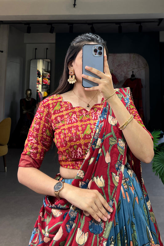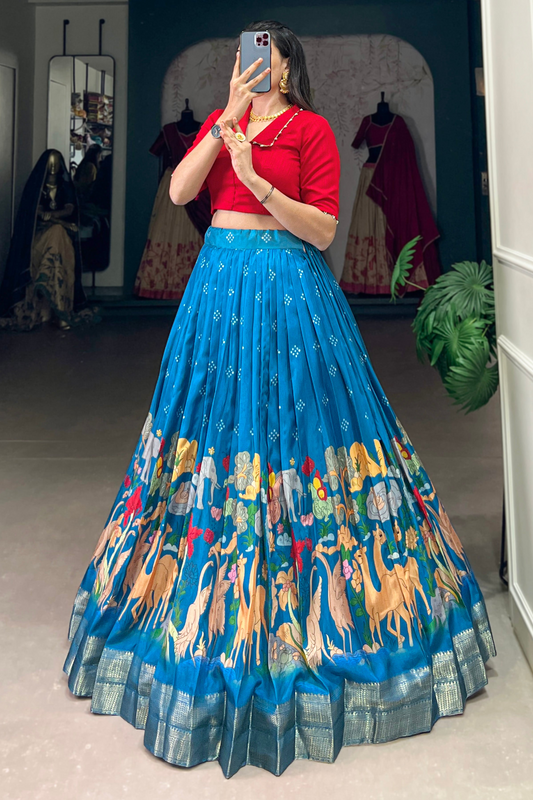 Sky Blue Silk Floral Print Lehenga Choli with Stylish Dupatta