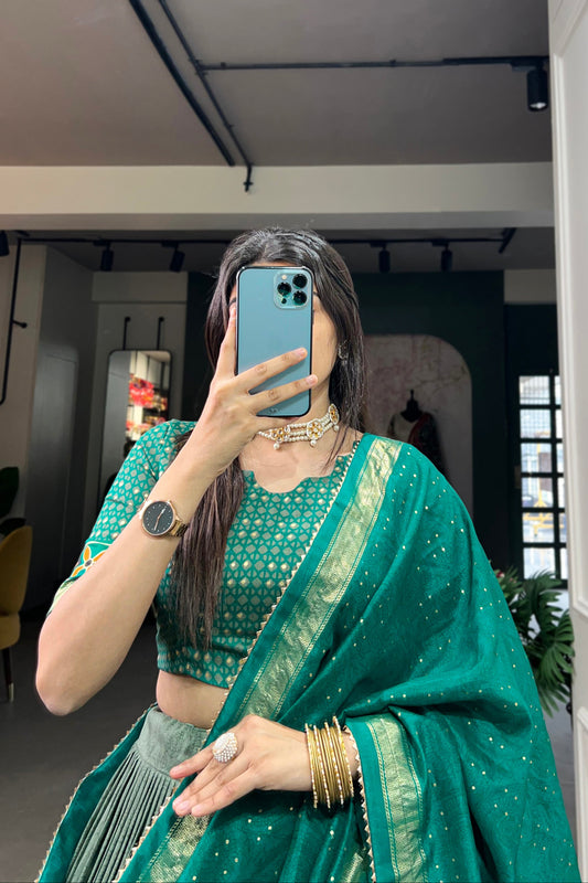 Green Dola Silk Printed Lehenga Choli for Special Festival