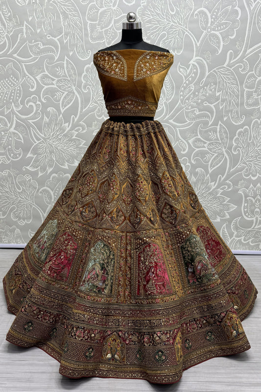 Brown Stitched Wedding Lehenga Choli with Beautiful Dupatta