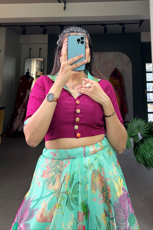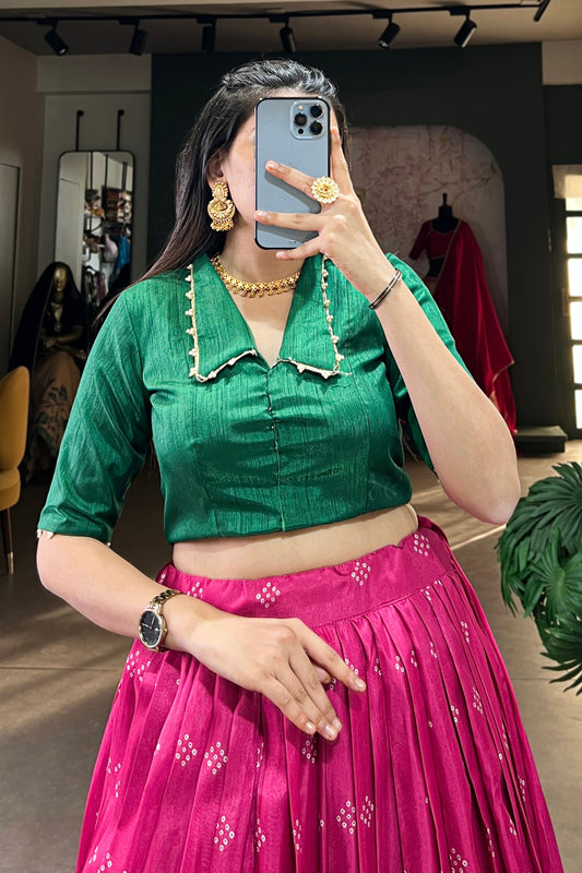 Premium Pink Silk Blouse for Printed Lehenga Choli