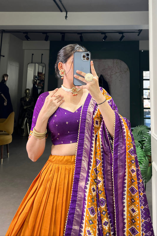 Eid Special Orange Silk Lehenga Choli with Beautiful Dupatta