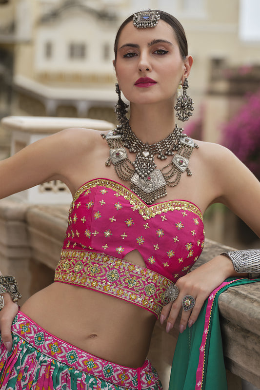 South Asian Traditional Lehenga with Pink Color Dupatta