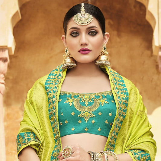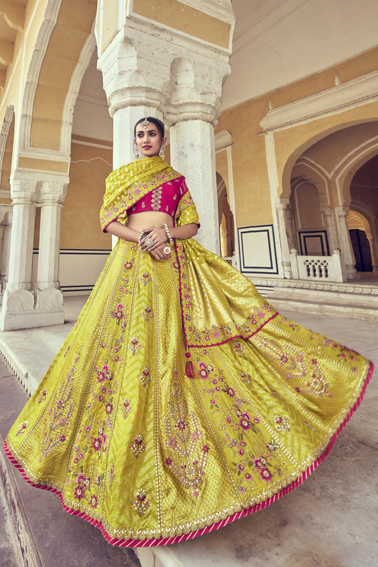 Gorgeous Lehenga Choli for Mehndi with Banarasi Silk Dupatta