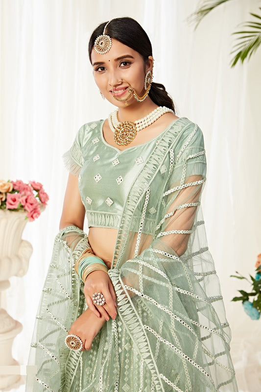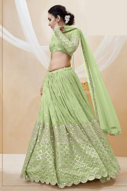 Style Ready To Wear Work Pista Color Lehenga for Mehndi