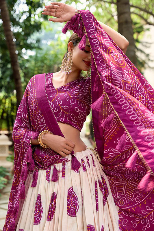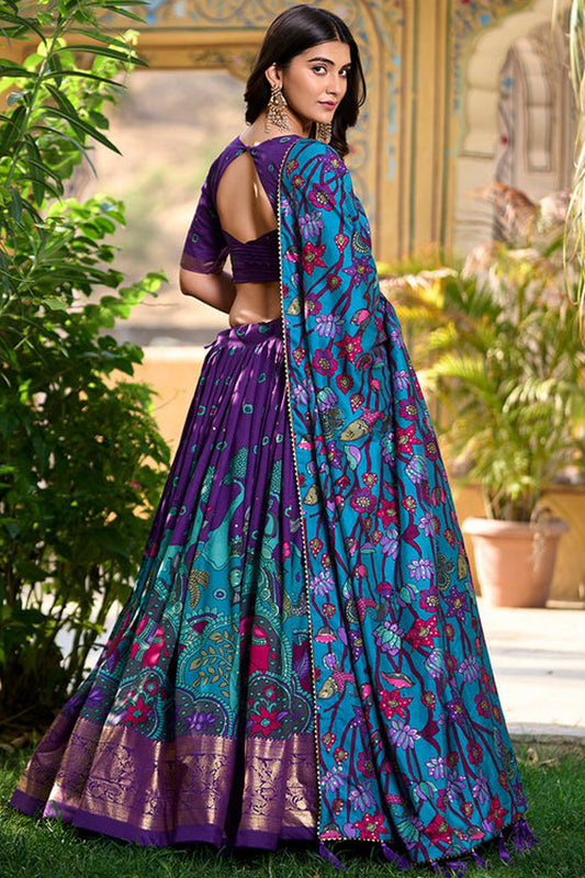 Style Purple Color Printed Western Lehenga Dupatta For Wedding