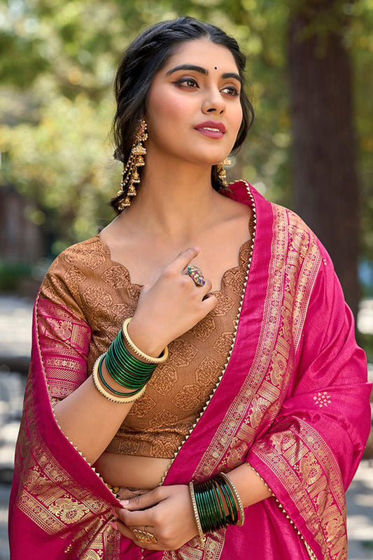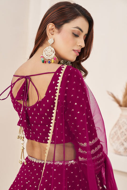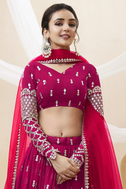 Wedding-Reception Stylish Dark Pink Color Lehenga With Dupatta