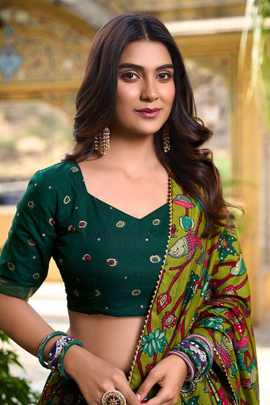Western Style Dark Green Color Lehenga With Dupatta For Reception