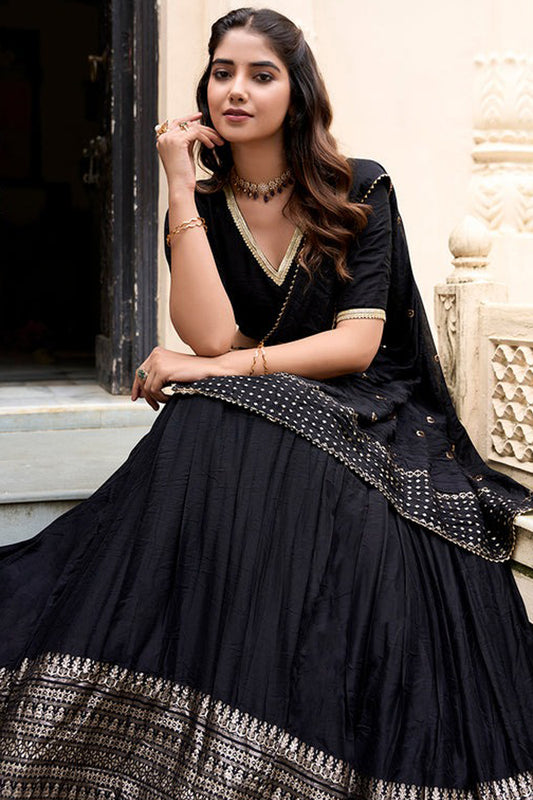 Wedding-Reception Special Black Color Lehenga With Stylish Dupatta