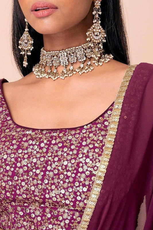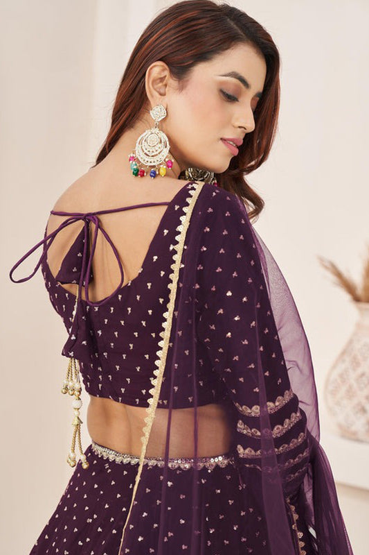Wedding-Reception Special Wine Color Sequins Work Lehenga With Dupatta