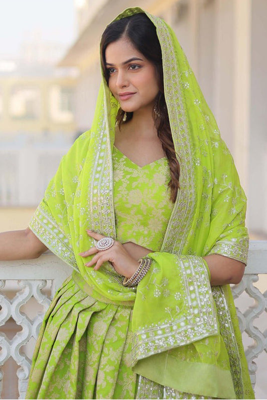 Green Color Special Embroidery Work Lehenga With Dupatta For Festival
