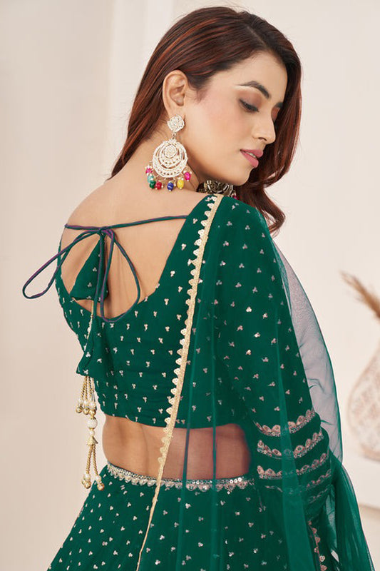 Newest Style Dark Green Color Western Lehenga For Wedding-Reception