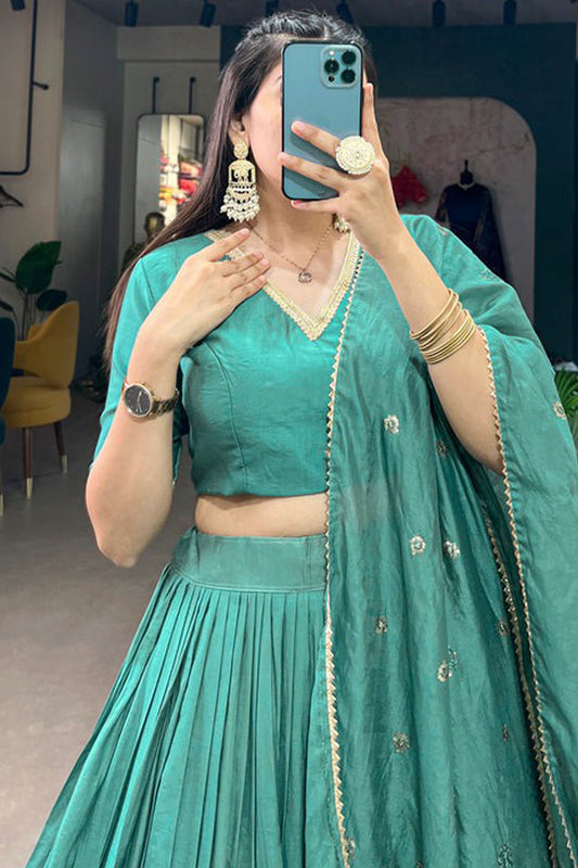 Embroidery Work Teal Color Zari Work Luxury Lehenga With Dupatta
