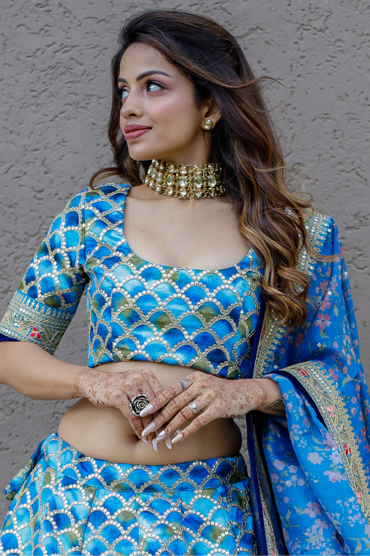Blue silk lehenga with sequins, embroidery in New Jersey