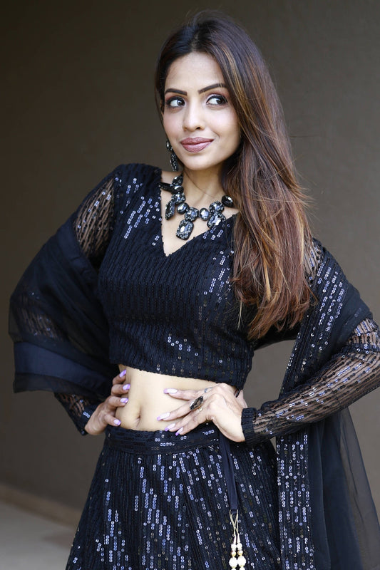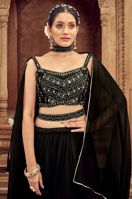 Black georgette bridal lehenga for reception in New York