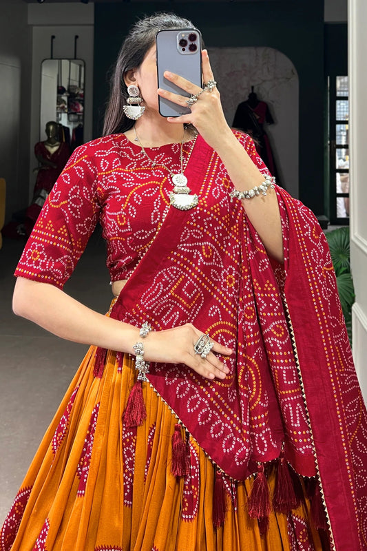Indian digital print lehenga with net dupatta, ready to wear USA.