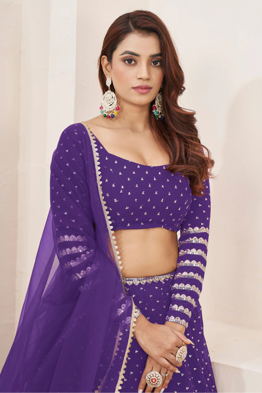 Purple Thread Embroidery Lehenga for Engagement Party Wear