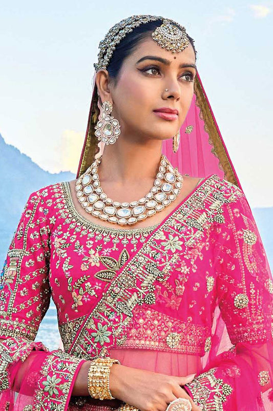 Pink Color vy Embroidery Work Lehenga Choli With Dupatta