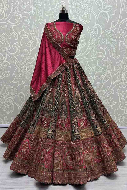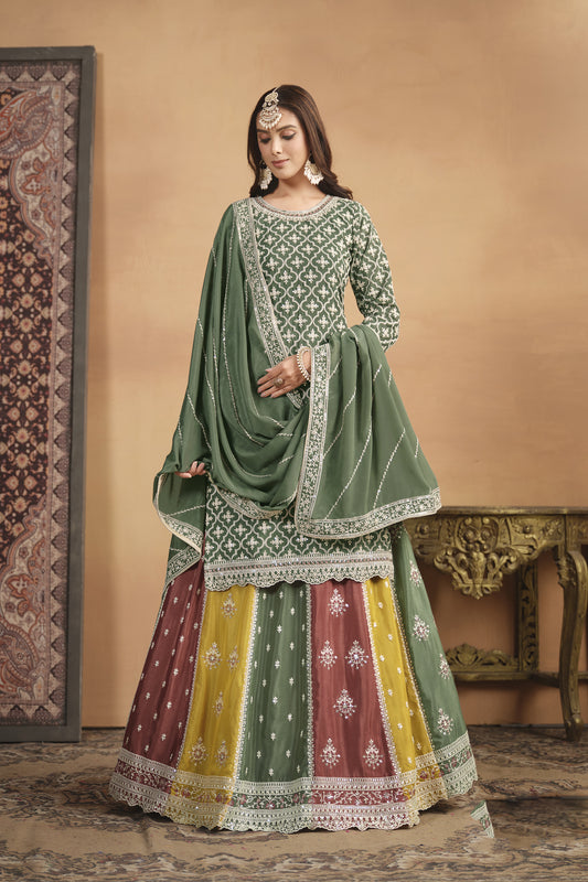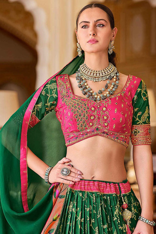 Luxury Green Color Lehenga Choli Suit With Dupatta For Western Woman