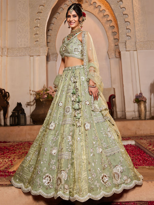 Gorgeous Pistachio Green Lehenga Choli with Heavy Embroidery Work