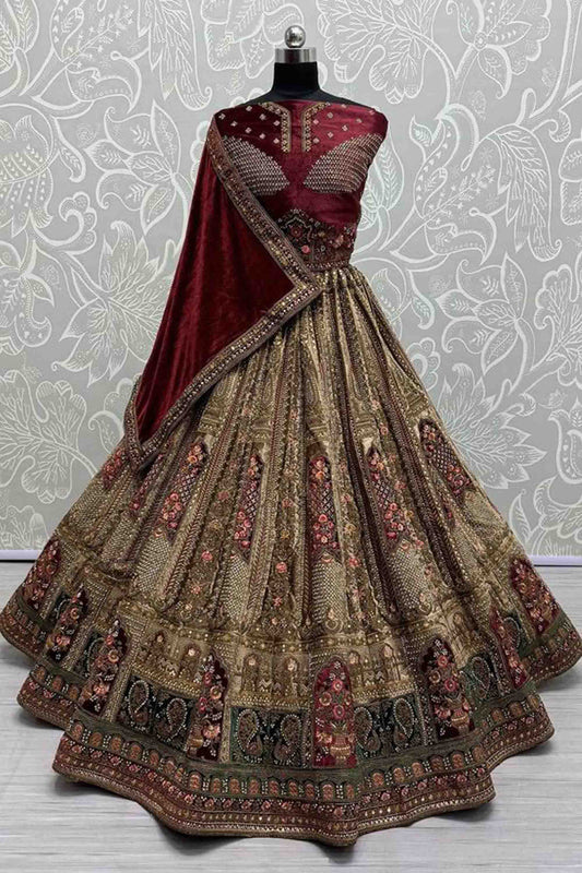 Traditional maroon lehenga suit with dupatta for ceremonies