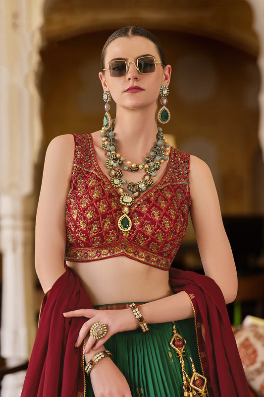 Elegant green lehenga choli with dupatta for weddings