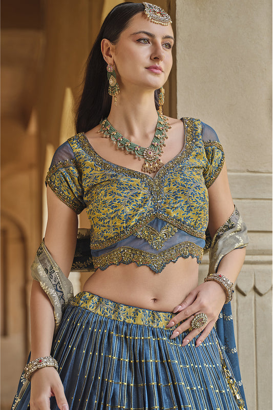 Premium blue lehenga choli with sequins for weddings